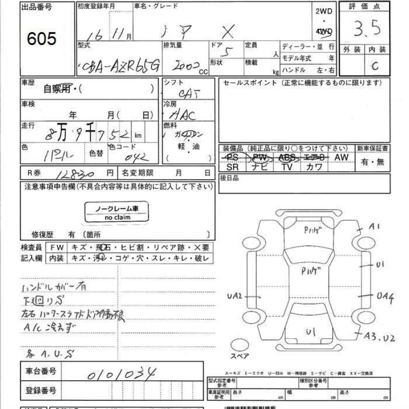 | Год выпуска | 2004/11 |  | Тип кузова | CBA-AZR65G |  | Объем двигателя | 1990 cc |  | Турбо | Нет |  | Привод | 4WD |  | Руль | Правый |  | Пробег | 89752                        км. / 55769 miles |  | Тип автомобиля | van |  |