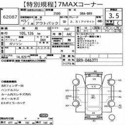 | Год выпуска | 2011/02 |  | Тип кузова | DBA-BR9 |  | Объем двигателя | 2450 cc |  | Турбо | Нет |  | Привод | 4WD |  | Руль | Правый |  | Пробег | 105126                        км. / 65322 miles |  | Тип автомобиля | SUV |  |