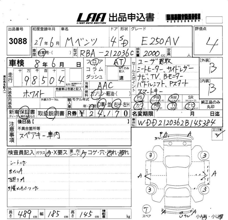 состояние и повреждения Mercedes-Benz E250 |