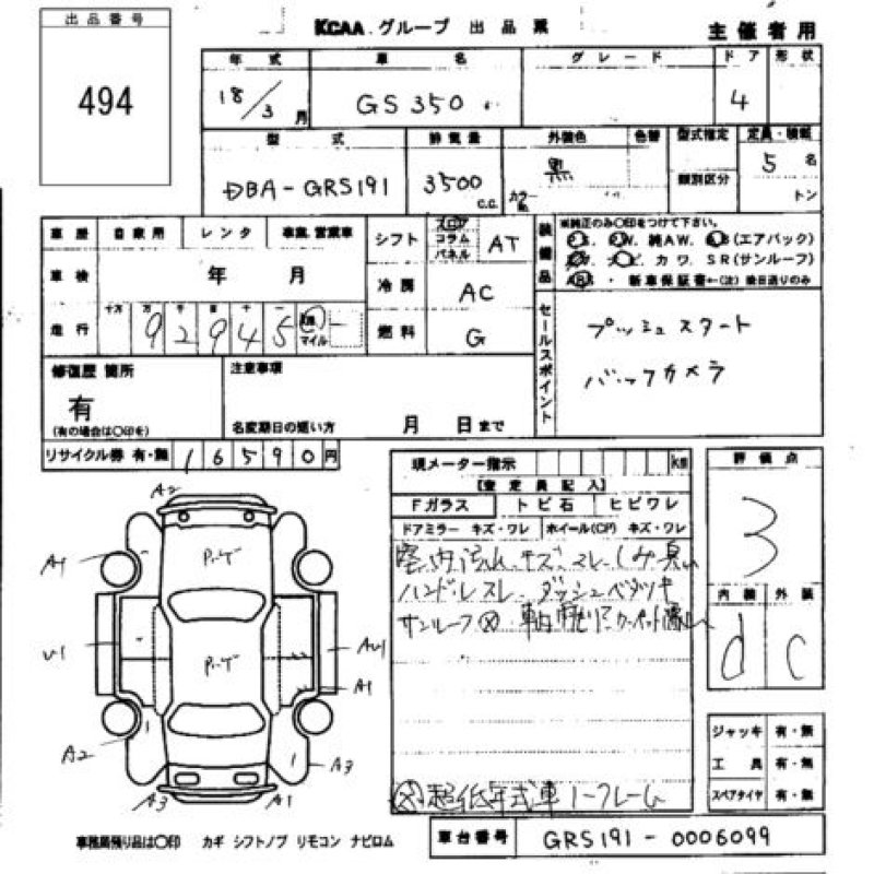 состояние и повреждения Lexus GS350 |