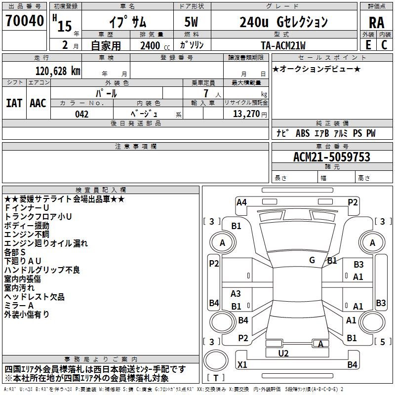 состояние и повреждения Toyota IPSUM |