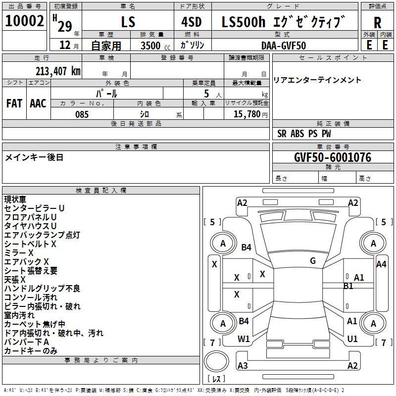 | Специальные заметки EXECUTIVE Sub-model, Max Specs, 3450cc,PS,PW,Airbag,Power seats,Leather Seats,Sunroof, all seats massage, rear entreatment system, brand new car cost was 17 million yen |